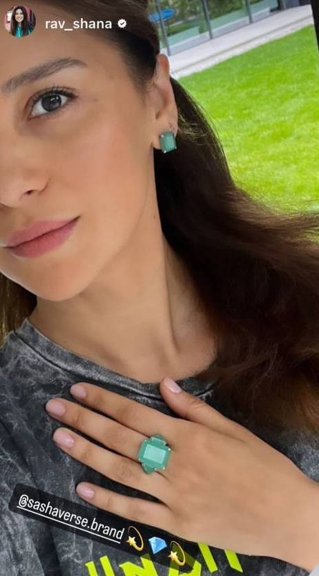 In the SASHAVERSE fall-winter collection, there are stud earrings and rings with one or two large colored or colorless crystals framed in white metal. The design is identical to classic jewelry pieces where the precious stone is the main protagonist.
