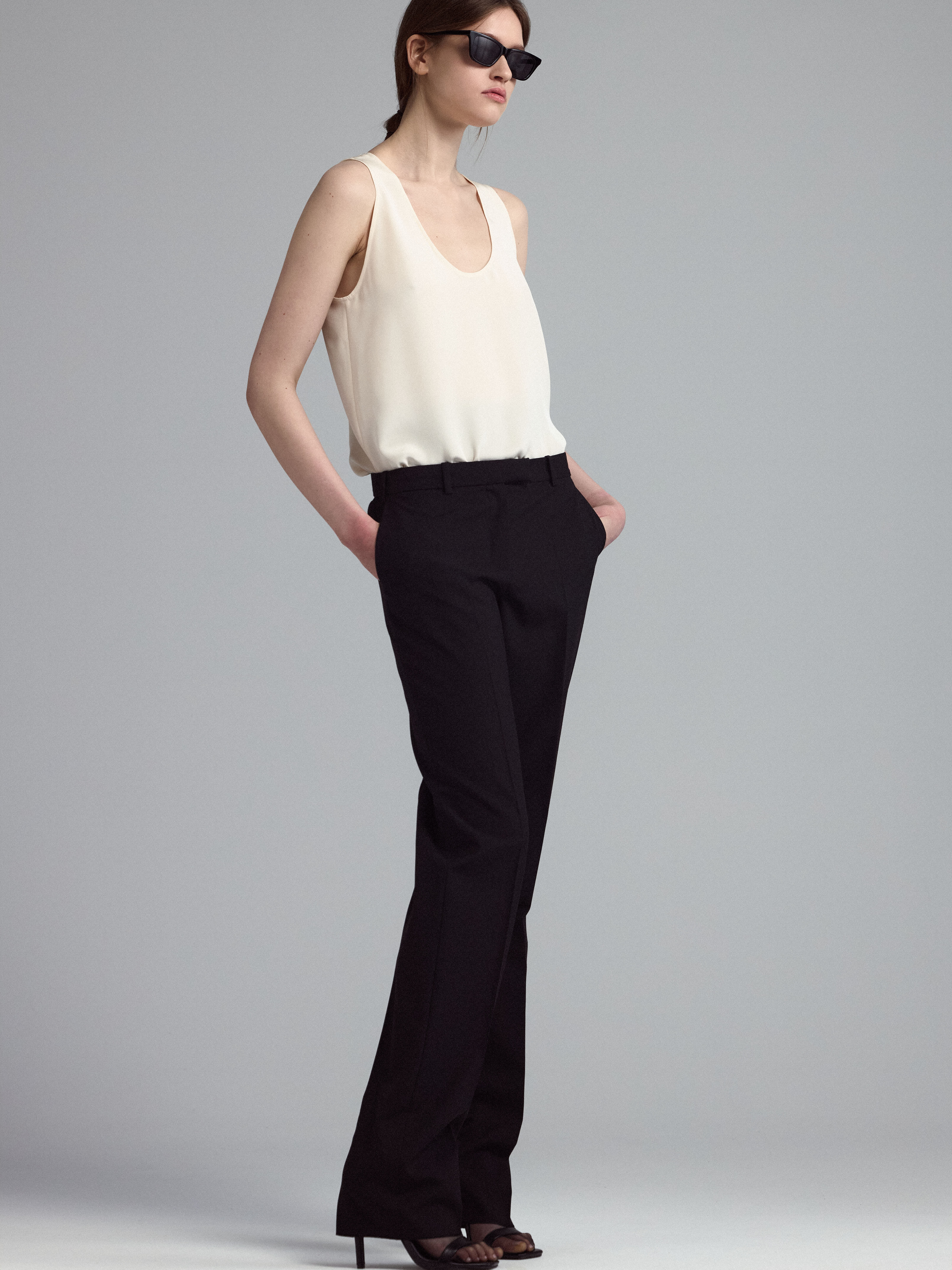Топ из шелка без рукавов c округлым вырезом и с небольшими разрезами по бокам.