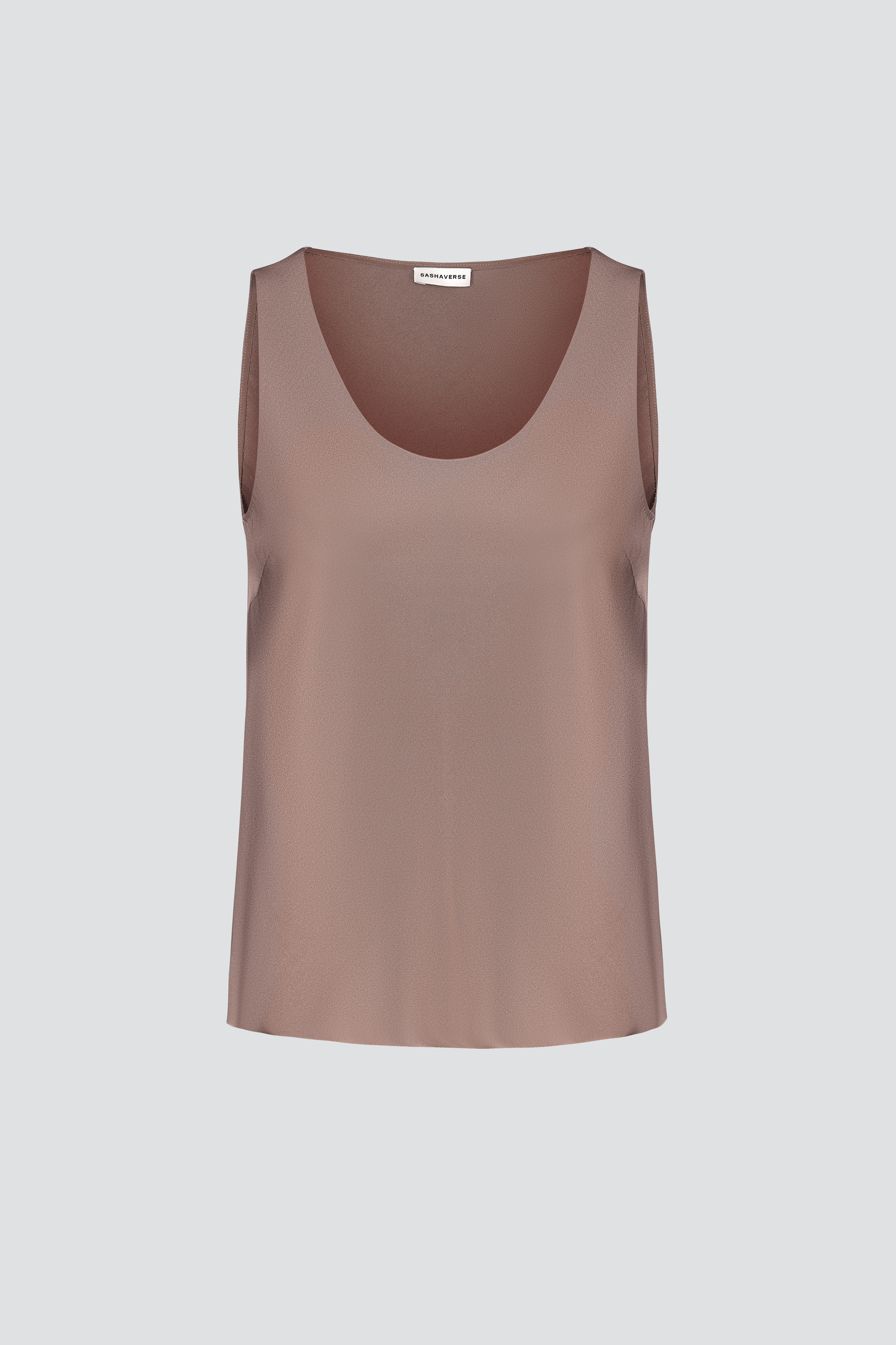 Топ из шелка без рукавов c округлым вырезом и с небольшими разрезами по бокам.
