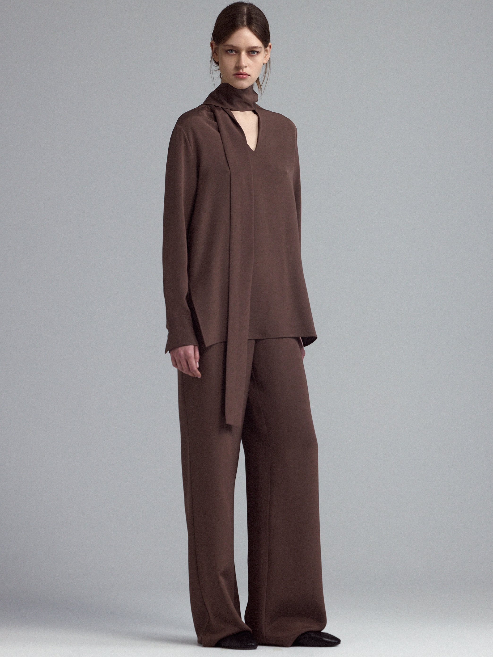 Брюки палаццо, без карманов, с застежкой на потайную молнию в боковом шве.