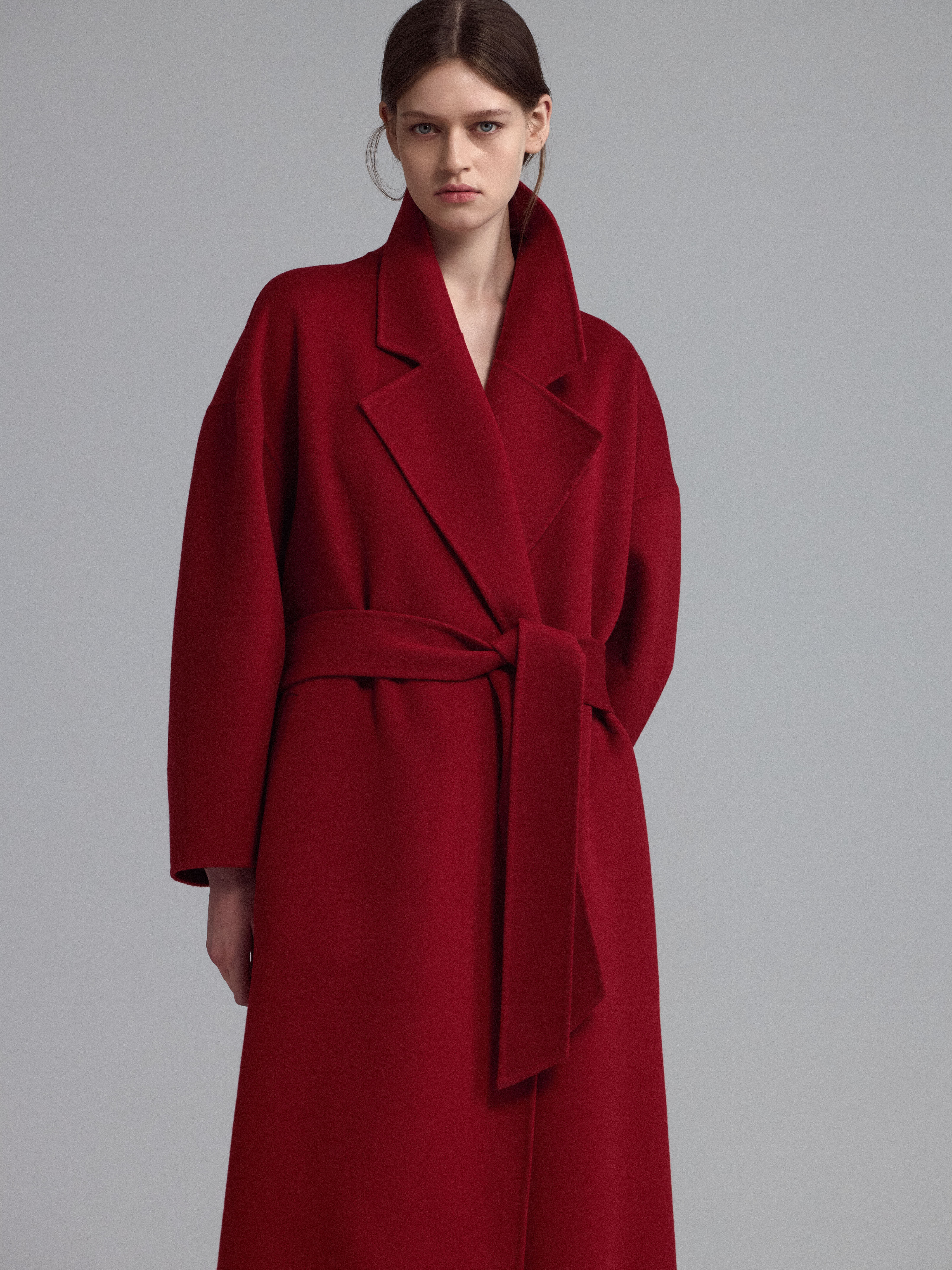 Пальто-халат без подкладки, свободного силуэта, с поясом.